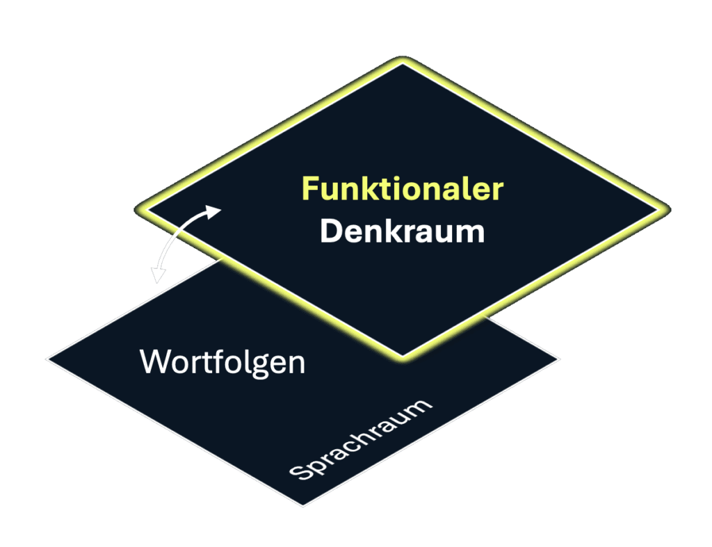 Grundprinzip: Gedanken werden im Sprachraum ausgedrückt — und im funktionalen Raum organisiert und verkettet.