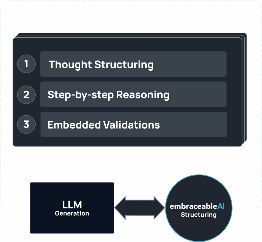 To turn word sequences into high-quality thought processes, what’s needed—beyond the AI models themselves—is an explicit “Thought-Structuring & Process-Guidance Architecture.” An additional layer above the AI models. This is exactly what we have built. You can read more here.