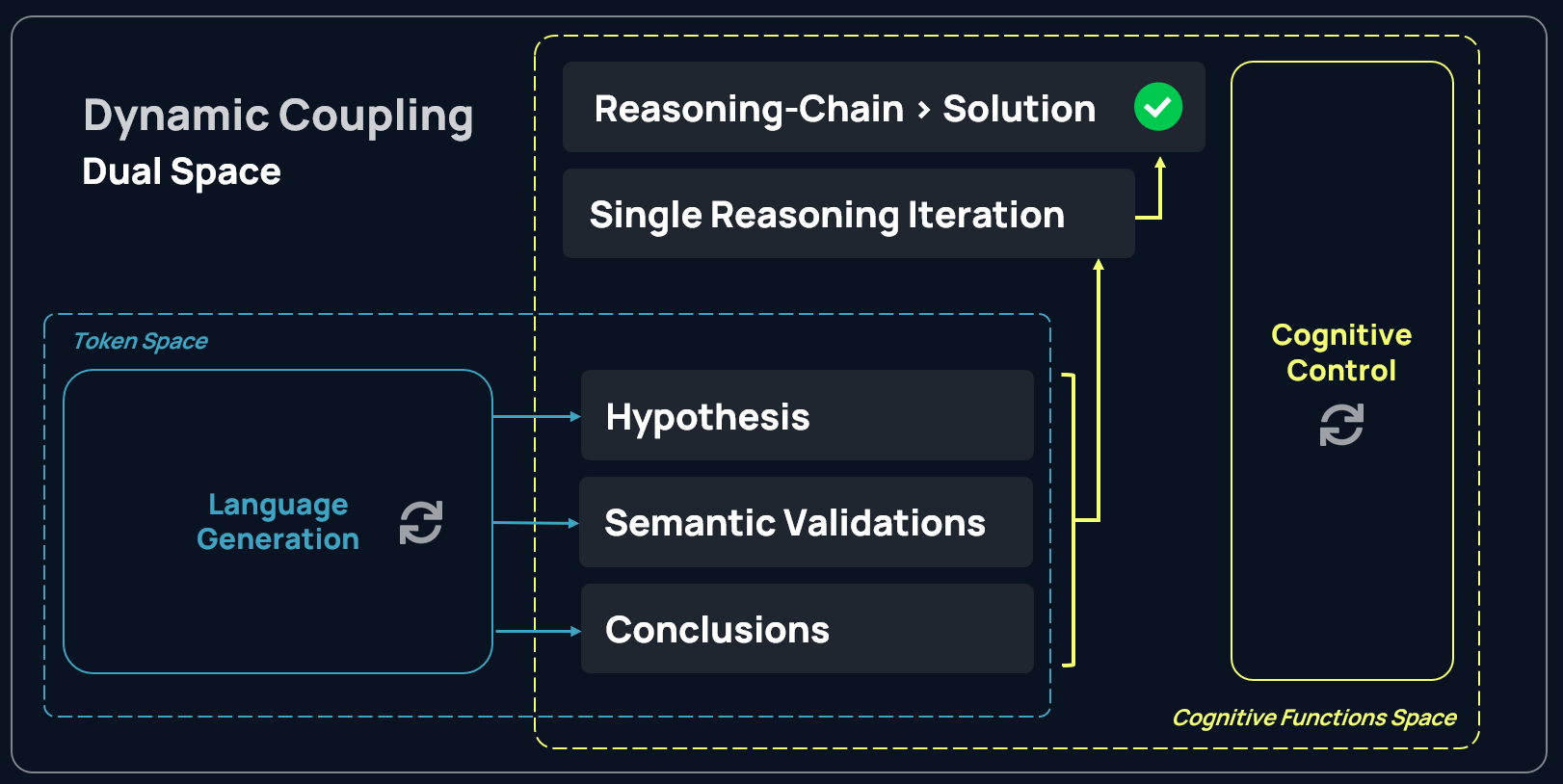 To overcome this limitation, we add a second representation space. This Dual-Space approach enables the structuring and stabilization of long chains of thought—taking the ability of AI to perform structured reasoning work to a new level.